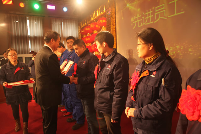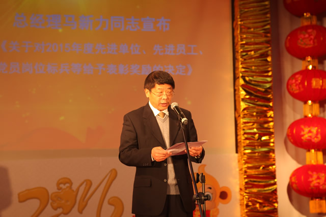 總(zǒng)經理馬新(xīn)力同(tóng)誌宣讀了公司《關於對2015年(nián)度先進集體、先進個人、黨員崗位標兵等給予表彰獎勵的決定》和《關於對在2015年度生產經營工作中做出突出貢獻(xiàn)人員進行嘉獎的決定》。