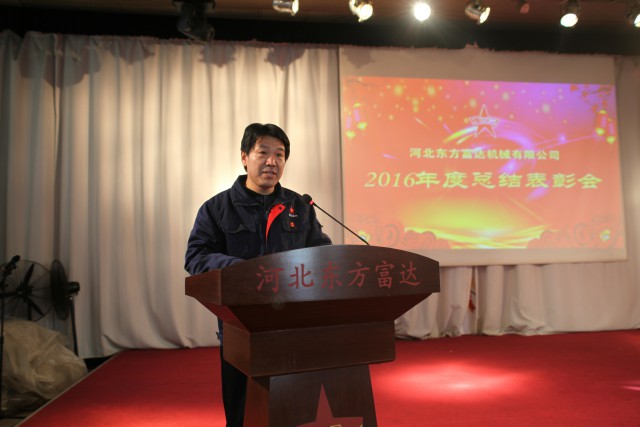 金猴留戀(liàn)豐收年(nián),彩鳳歡啼盛世(shì)春。1月18日,河北東方富(fù)達機械有限公(gōng)司在多功能廳召開了2016年度總結表彰會,全體受表(biǎo)彰人員(yuán)、班組長和中層以上幹部參(cān)加了會議。會(huì)議由黨(dǎng)委副(fù)書記、工會主席王永晨同誌主持。