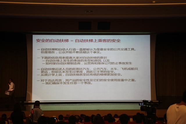 迅達(中國)電梯銷售與產品(pǐn)總監Tomas Kausel和研發(fā)總監邱海的(de)發言主題為自動扶梯安全風險的最小化與消除。他們分析了(le)自動扶梯故障的類別和原因,指出迅達自動扶梯在設計、製造、安(ān)裝、維保方(fāng)麵必(bì)須達到(dào)嚴(yán)格(gé)的(de)要求,自動扶梯(tī)在交付使(shǐ)用前要進行長(zhǎng)時間(jiān)的測試(shì),測試完全合格並和使用方正(zhèng)式交接後才可投入使用。