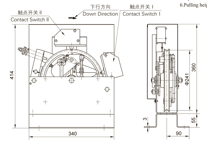 5、本限(xiàn)速器適用於上(shàng)行製動保護裝置為遙(yáo)控夾(jiá)繩器的電梯